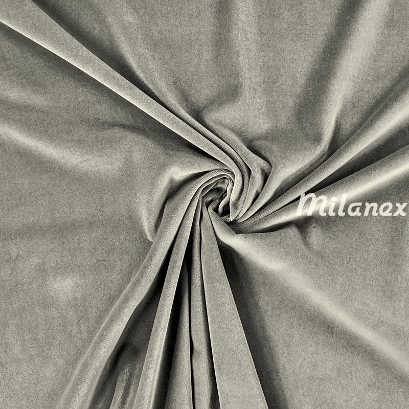 Tkanina aksamit bawełniany w kolorze popielatym.