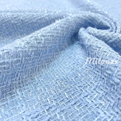 Tkanina Chanelka z błyszczącą nitką błękitna.
