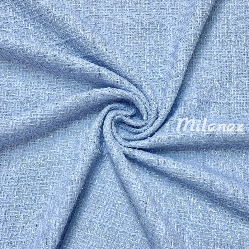 CHANELKA TKANINA TYPU BUCKLE Z BŁYSZCZĄCĄ NITKĄ BŁĘKIT