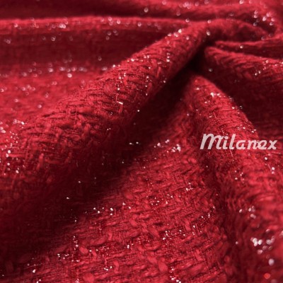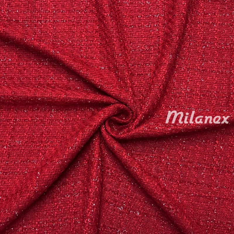 CHANELKA TKANINA TYPU BUCKLE Z BŁYSZCZĄCĄ NITKĄ CZERWONA